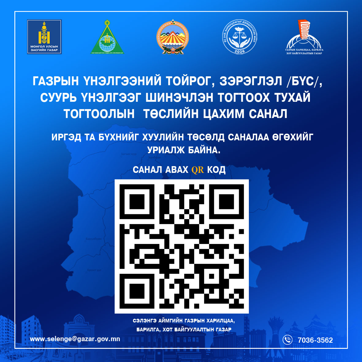 ГАЗРЫН ҮНЭЛГЭЭНИЙ ТОЙРОГ, ЗЭРЭГЛЭЛ /БҮС/, СУУРЬ ҮНЭЛГЭЭГ ШИНЭЧЛЭН ТОГТООХ ТУХАЙ” ТОГТООЛЫН ТӨСЛИЙН САНАЛ АСУУЛГА