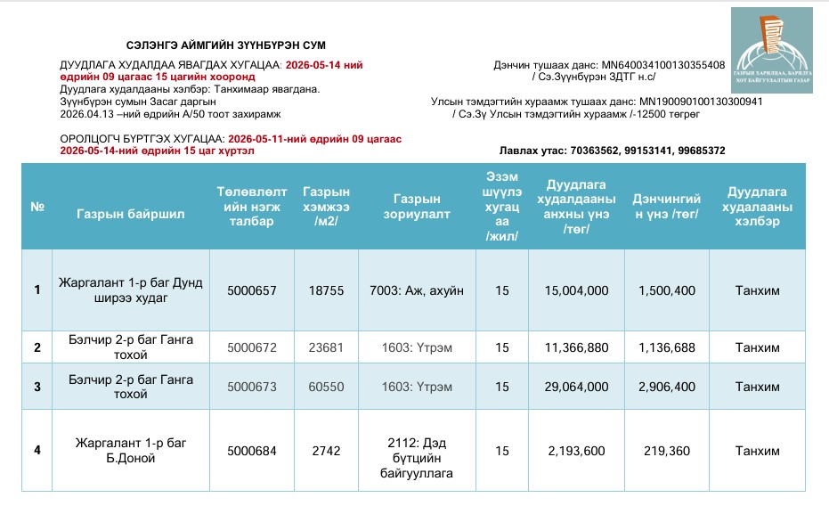 АЖИЛ ЭХЛҮҮЛЭХ ЗӨВШӨӨРӨЛ ОЛГОСОН БАРИЛГЫН ЖАГСААЛТ